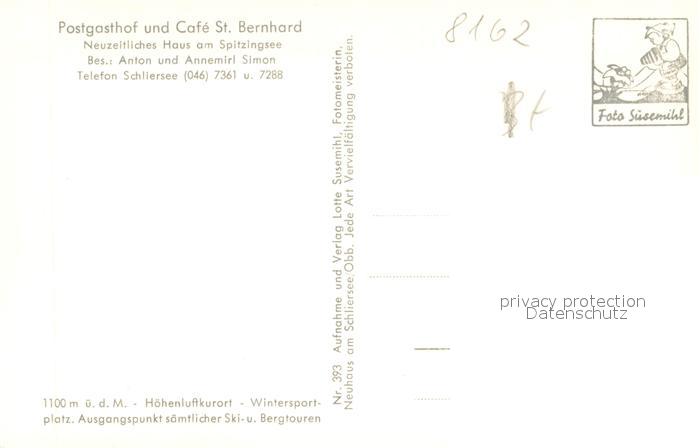 73652728 Schliersee Postgasthof und Cafe St. Bernhard am Spitzingsee Alpen postalisch nicht gelaufen Erhaltung siehe scans [FriedD77] KatCode: 11110009182131