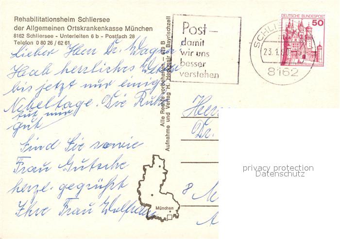 73165190 alte Postkarte Schliersee Rehabilitationsheim Schlierseee postalisch gelaufen Erhaltung siehe scans [LiesaD40] KatCode: 11110009182131
