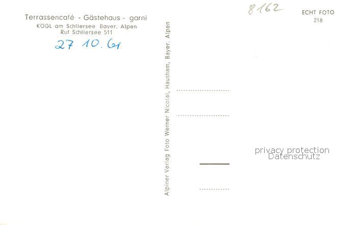 73652500 Schliersee Terrassencafe Gaestehaus garni Koegl postalisch nicht gelaufen Erhaltung siehe scans [WerneD78] KatCode: 11110009182131