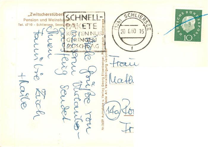 73891685 alte Postkarte Schliersee Zwitscherstueberl Pension und Weinstuben postalisch gelaufen Erhaltung siehe scans [FriedD77] KatCode: 11110009182131