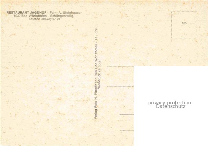 74036452 Schlingen Bad Woerishofen Unterallgaeu Restaurant Jagdhof postalisch nicht gelaufen Erhaltung siehe scans [FriedD77] KatCode: 11110009778116