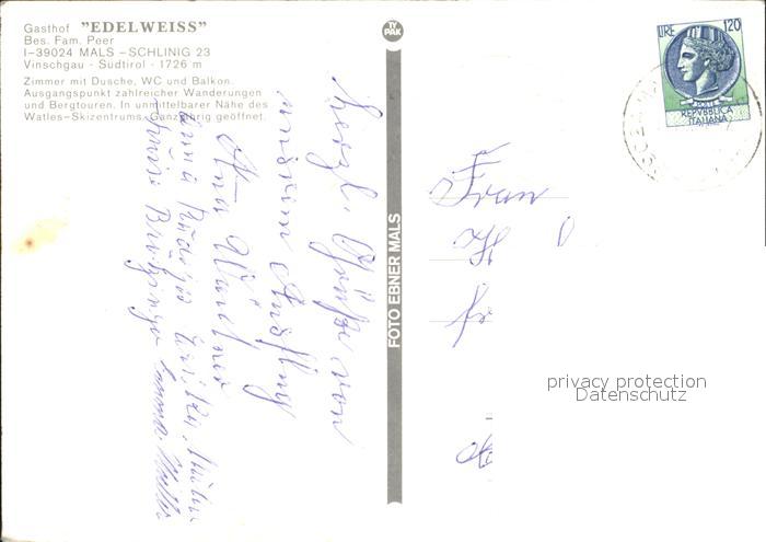 old postcard Schlinig Mals Suedtirol Blick zum Ortler Gasthof Edelweiss Sessellift postalisch gelaufen Erhaltung siehe scans