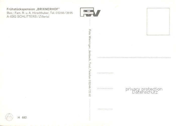 73588607 Schlitters Tirol Fr?hst?ckspension Brixnerhof postalisch nicht gelaufen Erhaltung siehe scans [PaolaD17] KatCode: 11390335070925