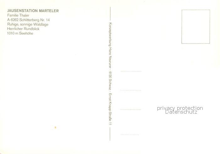 73630340 Schlitters Tirol Jausenstation Marteler postalisch nicht gelaufen Erhaltung siehe scans [WerneD78] KatCode: 11390335070925