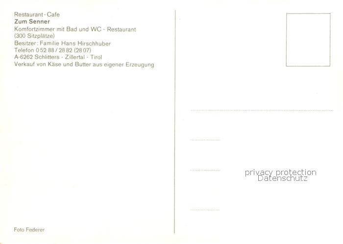 13010002 Schlitters Tirol Restaurant Zum Senner postalisch nicht gelaufen Erhaltung siehe scans [NatalD47] KatCode: 11390335070925