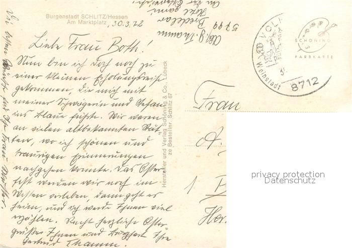73619871 alte Postkarte Schlitz Am Marktplatz postalisch gelaufen Erhaltung siehe scans [WerneD78] KatCode: 11110006535015