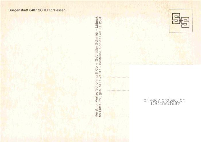 72753984 Schlitz Hessen Burgenstadt Fliegeraufnahme postalisch nicht gelaufen Erhaltung siehe scans [FriedD77] KatCode: 11110006535015