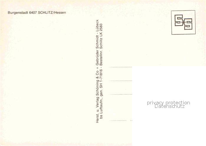 72753304 Schlitz Hessen Burgenstadt Fliegeraufnahme postalisch nicht gelaufen Erhaltung siehe scans [FriedD77] KatCode: 11110006535015