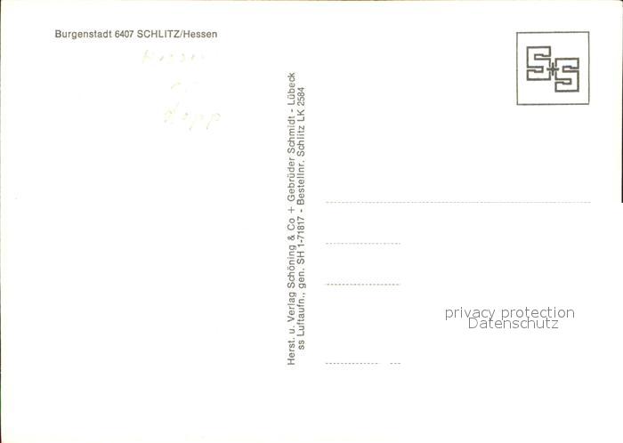 72576900 Schlitz Hessen Burgenstadt Fliegeraufnahme postalisch nicht gelaufen Erhaltung siehe scans [LiesaD40] KatCode: 11110006535015