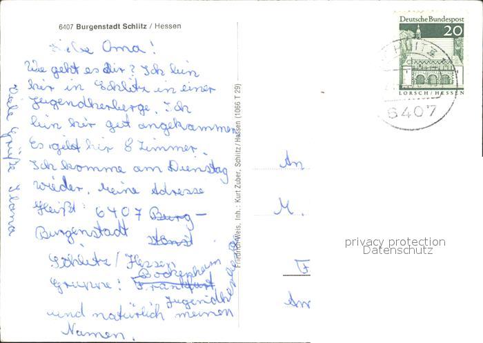 72098729 alte Postkarte Schlitz Hessen Burgenstadt Teilansicht postalisch gelaufen KatCode: 11110006535015