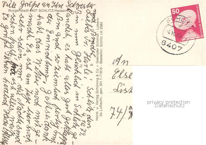 73711825 Schlitz Hessen Fliegeraufnahme Schloss postalisch gelaufen Erhaltung siehe scans [WerneD78] alte Postkarte Wern Katcode 11110006535015
