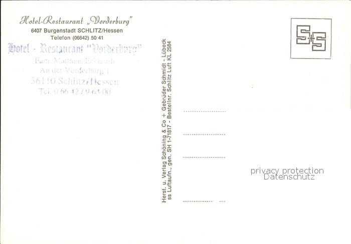 72415184 Schlitz Hessen Hotel Vorderburg postalisch nicht gelaufen Erhaltung siehe scans KatCode: 11110006535015