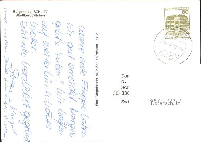 72555578 alte Postkarte Schlitz Hessen Stadtberggaesschen postalisch gelaufen Erhaltung siehe scans [AndreD76] KatCode: 11110006535015