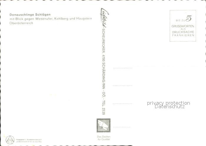72417597 Schloegen Donauschlinge mit Wesenufer Kohlberg und Haugstein Fliegeraufnahme postalisch nicht gelaufen Erhaltung siehe scans KatCode: 11390312040505
