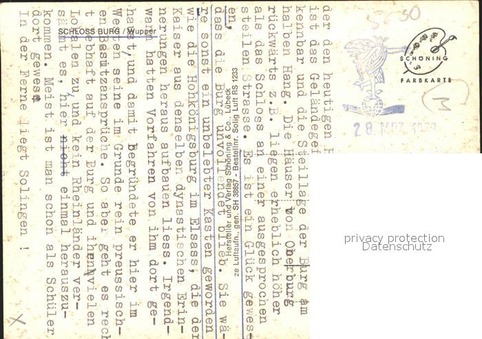 71908727 Schloss Burg Wupper postalisch nicht gelaufen Erhaltung siehe scans KatCode: 11110005122000