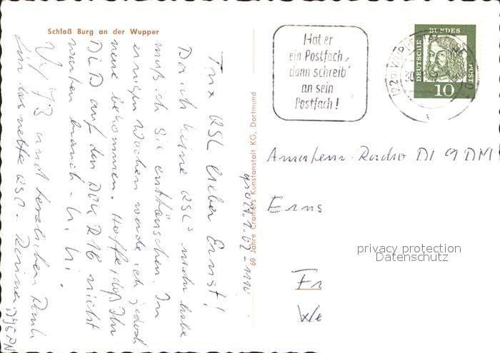 72364862 alte Postkarte Schloss Burg Wupper postalisch gelaufen Erhaltung siehe scans KatCode: 11110005122000