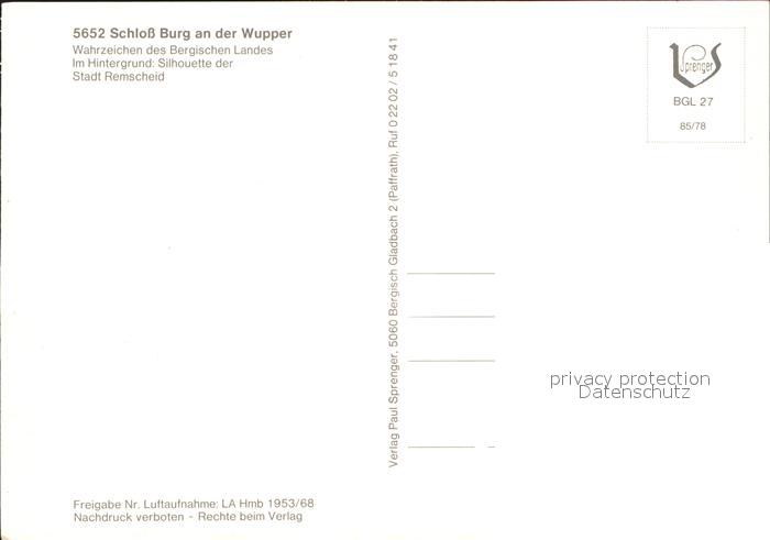 71909219 Schloss Burg Wupper Fliegeraufnahme postalisch nicht gelaufen Erhaltung siehe scans KatCode: 11110005122000