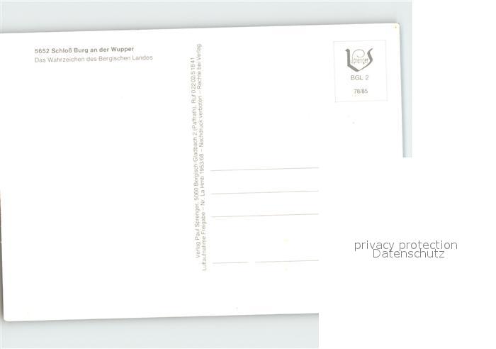 72362152 Schloss Burg Wupper Fliegeraufnahme postalisch nicht gelaufen Erhaltung siehe scans KatCode: 11110005122000