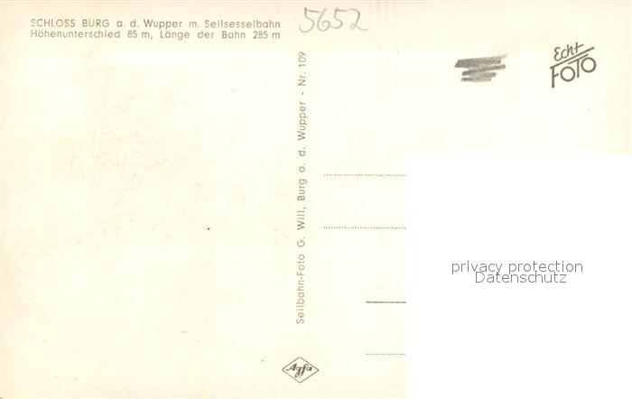 73695692 Schloss Burg Wupper Seilsesselbahn postalisch nicht gelaufen Erhaltung siehe scans [LiesaD40] KatCode: 11110005122000