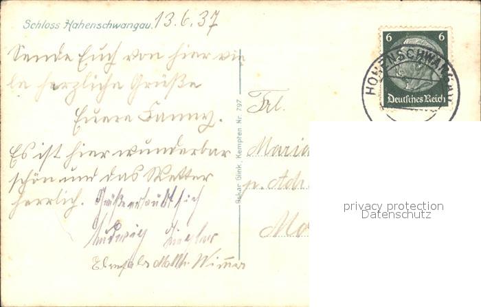 71832443 alte Postkarte Schloss Hohenschwangau postalisch gelaufen Erhaltung siehe scans KatCode: 11110009777169