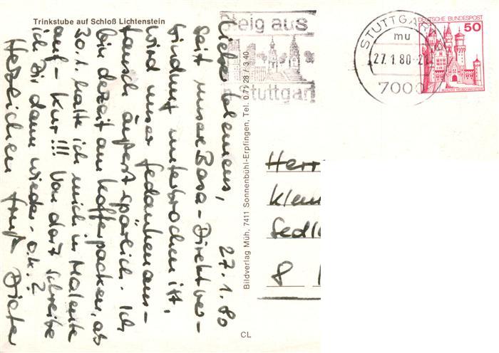 73879003 alte Postkarte Schloss Lichtenstein Trinkstube postalisch gelaufen Erhaltung siehe scans [WerneD78] KatCode: 11110008415092