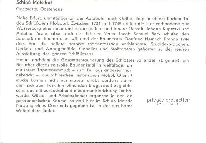 72174260 Schloss Molsdorf Gaststaette Gaestehaus postalisch nicht gelaufen Werbekarte (keine Postkarte) Erhaltung siehe scans KatCode: 11110016051000