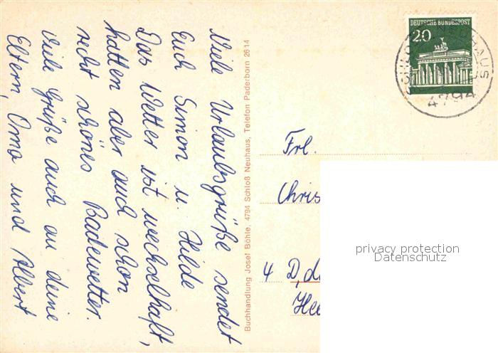 72747146 alte Postkarte Schloss Neuhaus Schloss Bielefelder Strasse Sertuener Denkmal Kirche postalisch gelaufen Erhaltung siehe scans [FriedD77] KatCode: 11110005774032