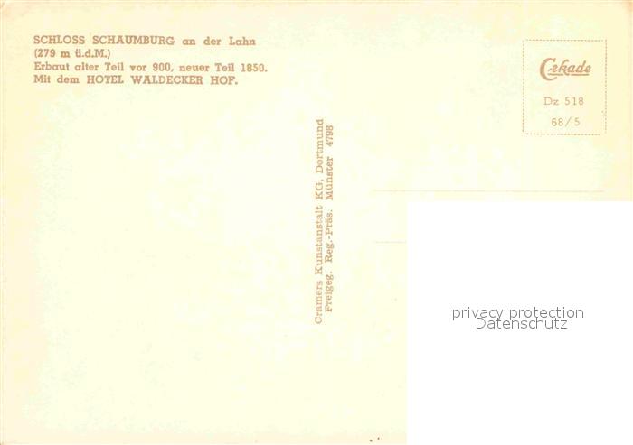 72839997 Schloss Schaumburg Balduinstein Fliegeraufnahme Schloss mit Hotel Waldecker Hof postalisch nicht gelaufen Erhaltung siehe scans [LiesaD40] KatCode: 11110007141503