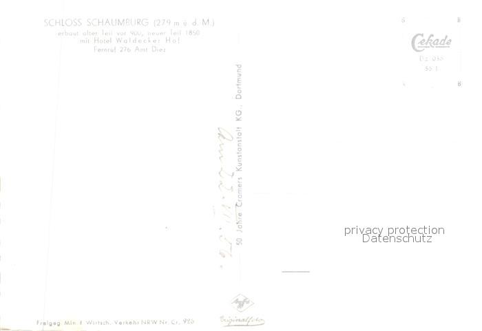 72952077 Schloss Schaumburg Balduinstein mit Hotel Waldecker Hof Fliegeraufnahme postalisch nicht gelaufen Erhaltung siehe scans [FriedD77] KatCode: 11110007141503