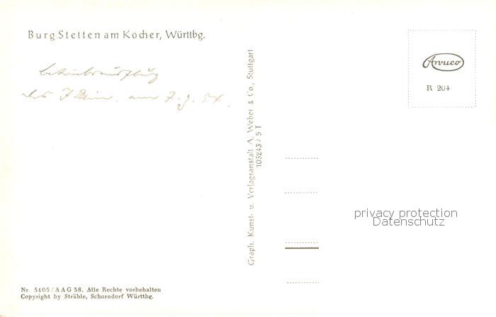 73764819 Schloss Stetten Kocher Burg Stetten postalisch nicht gelaufen Fliegeraufnahme Erhaltung siehe scans [FriedD77] KatCode: 11110008126046