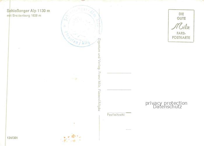 74110399 Schlossanger-Alp 1130m Pfronten Bayern mit Breitenberg postalisch nicht gelaufen Erhaltung siehe scans [WerneD78] Wern Katcode 11110009777159