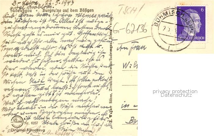 old postcard Schlossboesig Tschechien Burgruine Boesig postalisch gelaufen Erhaltung siehe scans [PaolaD17]