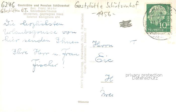 73706504 alte Postkarte Schlossborn Gaststaette Pension Schuetzenhof postalisch gelaufen Erhaltung siehe scans [WerneD78] KatCode: 11110006434003