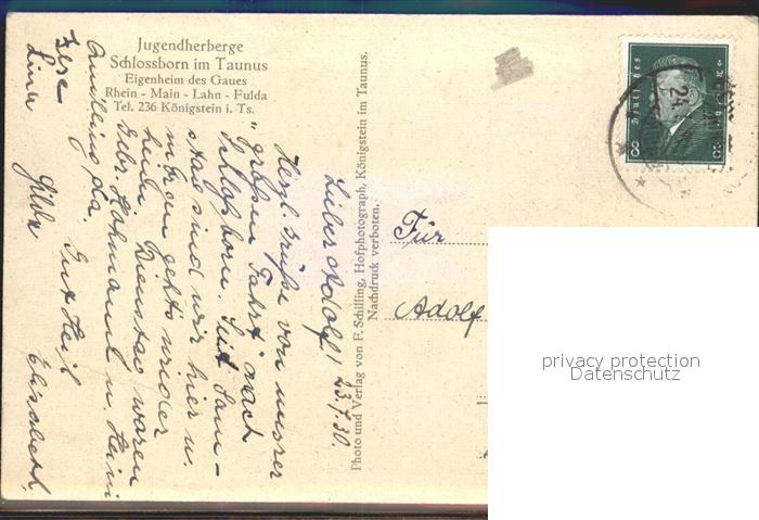 72096429 alte Postkarte Schlossborn Jugendherberge postalisch gelaufen Erhaltung siehe scans KatCode: 11110006434003