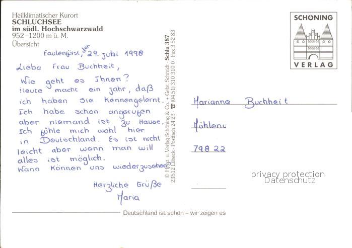 71830454 Schluchsee postalisch nicht gelaufen Erhaltung siehe scans KatCode: 11110008315102