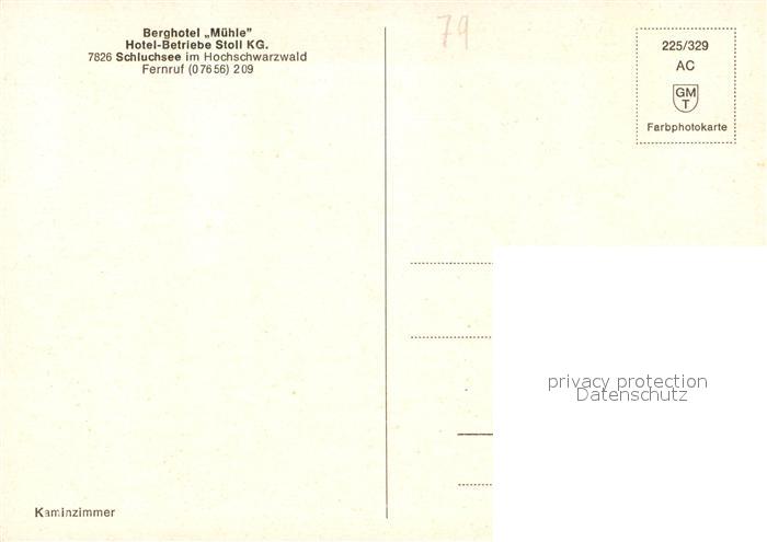 73333056 Schluchsee Berghotel Muehle Hotel Betriebe Stoll KG postalisch nicht gelaufen Erhaltung siehe scans [LiesaD40] KatCode: 11110008315102