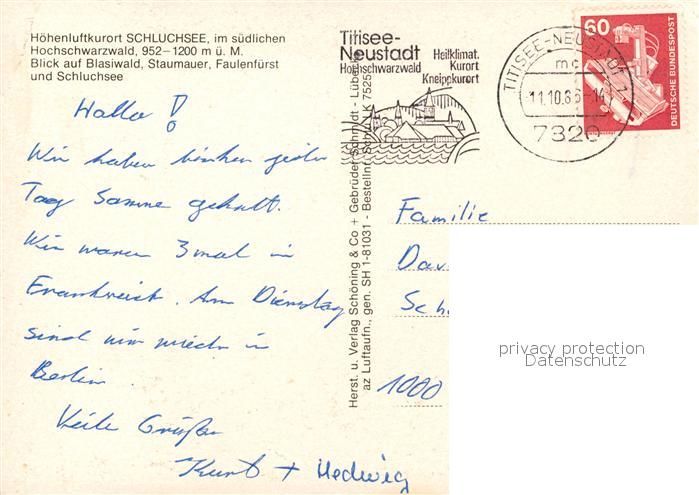73031381 alte Postkarte Schluchsee Blasiwald Staumauer postalisch gelaufen Erhaltung siehe scans [KathaD81] KatCode: 11110008315102