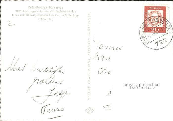 72304969 alte Postkarte Schluchsee Cafe Pension Hubertus postalisch gelaufen Erhaltung siehe scans KatCode: 11110008315102