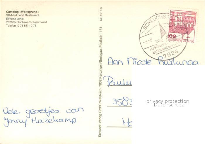 73660992 alte Postkarte Schluchsee Camping Wolfsgrund SB-Markt Restaurant Landschaftspanorama Schwarzwald postalisch gelaufen Erhaltung siehe scans [FriedD77] KatCode: 11110008315102