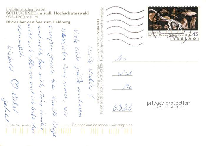73190284 alte Postkarte Schluchsee Feldberg postalisch gelaufen Erhaltung siehe scans [NatalD47] KatCode: 11110008315102