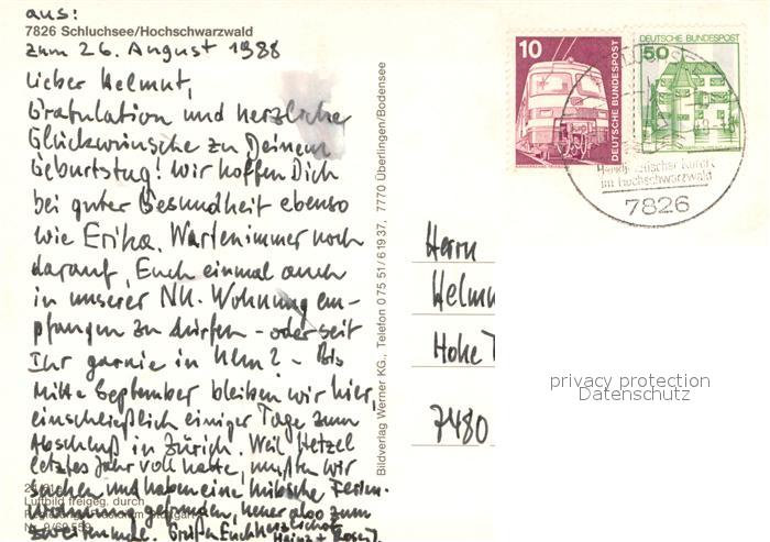 73688370 alte Postkarte Schluchsee Fliegeraufnahme postalisch gelaufen Erhaltung siehe scans [FriedD77] KatCode: 11110008315102