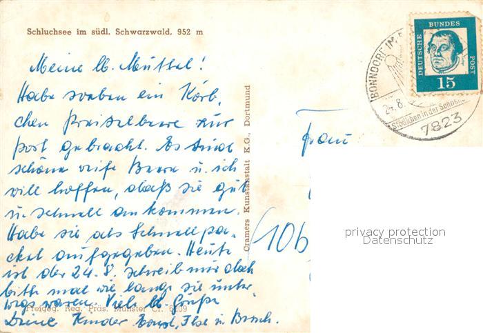 73679614 alte Postkarte Schluchsee Fliegeraufnahme postalisch gelaufen Erhaltung siehe scans [LiesaD40] KatCode: 11110008315102