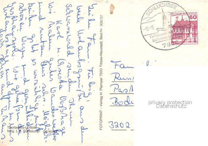 73166971 alte Postkarte Schluchsee Fliegeraufnahme postalisch gelaufen Erhaltung siehe scans [KathaD81] KatCode: 11110008315102