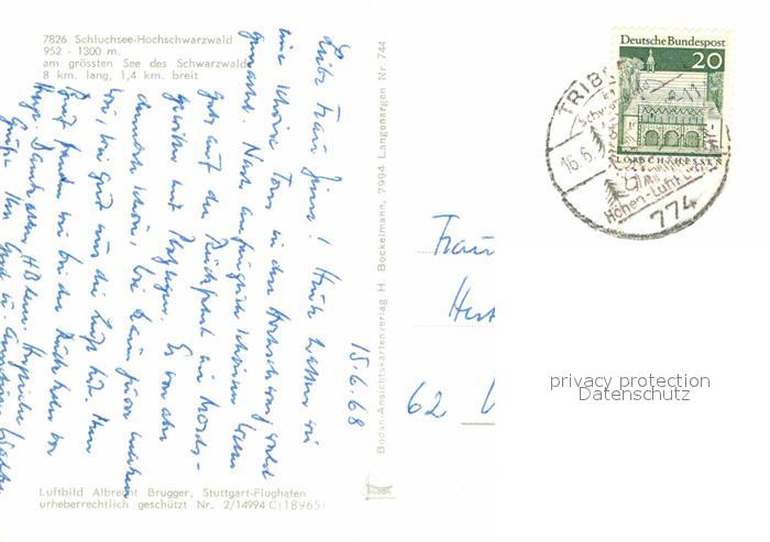 72888220 alte Postkarte Schluchsee Fliegeraufnahme postalisch gelaufen Erhaltung siehe scans [LiesaD40] KatCode: 11110008315102