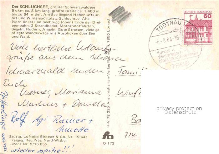 72824585 alte Postkarte Schluchsee Fliegeraufnahme postalisch gelaufen Erhaltung siehe scans [AndreD76] KatCode: 11110008315102