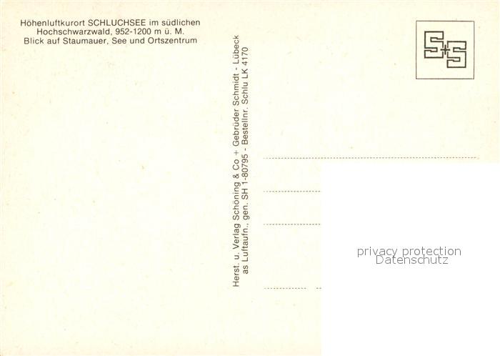 73212506 Schluchsee Fliegeraufnahme mit Staumauer See und Ortszentrum postalisch nicht gelaufen Erhaltung siehe scans [WerneD78] KatCode: 11110008315102