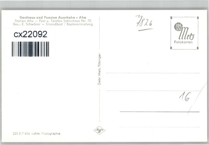 30739402 Schluchsee Gasthaus Pension Auerhahn postalisch nicht gelaufen KatCode: 11110008315102