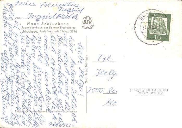72068013 alte Postkarte Schluchsee Haus Schluchsee Jugendkurheim Barmer Ersatzkasse postalisch gelaufen Erhaltung siehe scans KatCode: 11110008315102