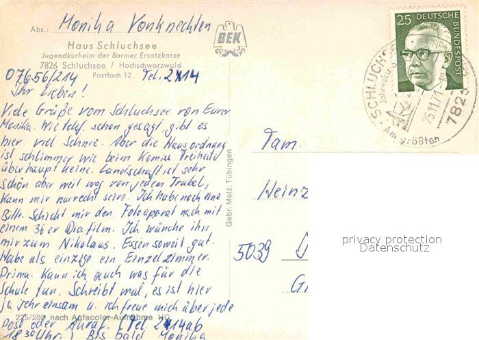72730679 alte Postkarte Schluchsee Haus Schluchsee postalisch gelaufen Erhaltung siehe scans [AndreD76] KatCode: 11110008315102