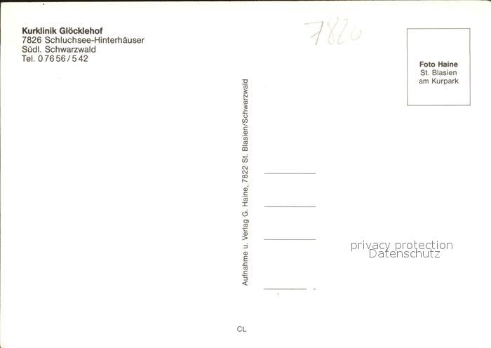 72420500 Schluchsee Hinterhaeuser Kurklinik Gloecklehof postalisch nicht gelaufen Erhaltung siehe scans KatCode: 11110008315102
